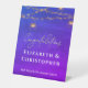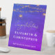 Elegantes und modernes Hochzeitsgeschenk Verlobung Glückwunsch Tafelschild für das frisch verlobte Paar. Wünschen Sie Ihrem glücklichen Paar ein inspirierendes Zitat "Möge Ihre Liebe immer wachsen" oder eine andere persönliche Nachricht. Monogramm mit den Paarnamen, um Ihr eigenes Party-Zeichen zu erstellen. Ideal auch für Hochzeitsfeiern! Das stilvolle Schild beinhaltet moderne Teelichter mit bläulichem bis lila schwarzem Hintergrund. Typografischer Stil gratulieren Text.