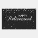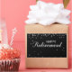 Eine nette Nachricht umgeben von silbernen Glitzern, sehen Sie alle auf schwarz. Eine sehr elegante Gratulation Geschenk, Souvenir, Geschenk und Party essenziell für einen Mann oder eine Frau in ihrem Ruhestand. Sagen Sie ihnen, Sie sind stolz auf sie und wünschen ihnen das Beste.