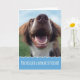Einen neuen besten Freund zu finden ist phantastisch und ein Rettungshund adoptieren ist etwas, worüber man lächeln kann. Diese Gratulationskarte verfügt über einen Rettungspult. Sie ist eine sorgenfreie braune und weiße Spaniel-Mischung, die vom Ohr bis zum fließenden Ohr lächelt, während sie Grüngras und blauen Himmel genießt.