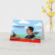 Herzlichen Glückwunsch zu Ihrem neuen Auto, Papier Grußkarte. Auf der Karte steht ein Mann, der eine Krawatte trägt, die im Wind weht, während er seinen neuen roten Sportwagen fährt. Er ist oben unten und fährt unter einem strahlend blauen Himmel mit einigen flauschigen Wolken. Art, Bild und Vers Copyright © Shoaff Ballanger Studios.