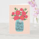 Ein Maurerkirsch gefüllt mit einem herrlichen Haufen von Bäuerchen und weißen Blume mit den handgeschriebenen Worten 'Für meine Tochter' auf dem Etikett und 'Happy 46. Geburtstag' auf dem Maurerkrug. Die perfekte Geburtstagskarte zum Geburtstag Ihrer Tochter! © Ness Nordberg