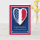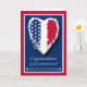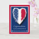 Herzlichen Glückwunsch zum Abschluss der Feuerwehrakademie. Patriotische thematische Grußkarte mit einem Herz, das mit den US Flagge der amerikanischen Fahne dekoriert ist. Traditionelle Farben in rot, weiß und blau. Gerahmt in weiß und rot. Art, Bild und Vers Copyright © Shoaff Ballanger Studios.