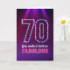 Wünschen Sie jemanden ein glückliches 70-jähriges Jubiläum mit diesem einzigartigen, digital gerenderten Neoneffekt Typografie-Design mit der Zahl 70 in hellblau und rosa Neonleuchten mit Spotlight Effekt auf dunklen lila Farbverlauf. Unter der Nummer 70 lautet die Überschrift: "Sie lassen es so fabelhaft aussehen!" Inside kann mit Ihrer eigenen Nachricht angepasst werden. 70 sah noch nie so gut aus! Hoffe, das kommende Jahr ist voller Segnungen, die würdig von Ihnen: eine phantastische Person, die ein Leben hat. Wir wünschen Ihnen viel Glück, Frieden und Freude in den kommenden Jahren. Alles Gute zum 70. Geburtstag!