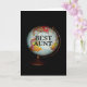 Ein farbenfroher antiker Globus, der vor einem schlichten schwarzen Hintergrund fotografiert wurde, ist Gegenstand meiner Geburtstagskarte "Happy Birthday To The Best Tunt On Earth". Der schwarze Text auf der Erde lautet "Beste Tante".