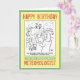 Eine Geburtstagskarte mit einem Cartoon Noah auf seinem Arsch, der den Tieren sagt, dass die Wettervorhersage für mehr Regen ist. Ideal für Meteorologen oder Wetterforscher.