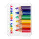Wünschen Sie jemanden einen hellen und farbenfrohen Tag mit diesem nahen Bild von sechs niederbogenfarbenen Kunststiften, wenn Sie Happy Birthday sagen!