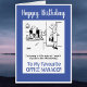 Office Manager Geburtstagskarte. Die Personal Assistant verlasse früh, weil sie nicht so spät ankam. Personalisieren Sie Ihre persönlichen Daten und Ihre Nachricht. Ideal für eine lustige Geburtstagskarte für einen Office Manager. Dunkelblauer Hintergrund.