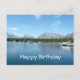 Landscape Foto zum Geburtstag Postkarte. Grand Teton Nationalpark Landschaftsfotografie von schönem blauen Himmel, See, Bäume, Berge und Boote. Fügen Sie Ihren Text hinzu, um diese Karte zu personalisieren.