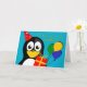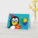 Herzlichen Glückwunsch zum Geburtstag in isländischer Sprache. Ein niedlicher Pinguin mit Party-Hut, mit Ballons und einem Geburtstagsgeschenk in gelbem Band verpackt. Helle und farbenfrohe Grußkarte. Bleib drinnen, um eine persönliche Nachricht zu erhalten. Pinguin dank: BartM/Openclipart. Copyright ©Shoaff Ballanger Studios.
