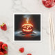 Ein glühender Kürbis, der mit den Worten "Happy Birthday" gemeißelt wurde, zeichnet sich durch die Dunkelheit aus, wobei von oben Rauch aufsteigt, was eine einzigartige festliche Atmosphäre schafft.