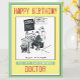 Der lustige Cartoon eines Doktors, der an der Medizinischen Schule ein Rezept schreibt. Ideal zum Geburtstag eines Arztes oder eines Arztes.