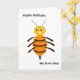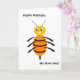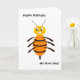 Geburtstagskarte für jemanden, der eine geschäftige Biene ist. Cartoon einer glücklich aussehenden Biene.