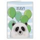 Glückliche Geburtstagskarte mit Panda in Blau und Grün.