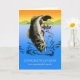 Herzlichen Glückwunsch zur Rentenkarte für einen Onkel. Vintag inspirierte Darstellung eines großen Mund-Bass, der von zwei Fischern in einem Retro-Holzboot gefangen wird. Grosses Schwimmen und Wellen im See Wasser im Vordergrund mit grünen Hügeln und einem Sonnenuntergang im Hintergrund. Art, Bild und Vers Copyright © Shoaff Ballanger Studios.