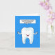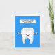 Ein niedlicher Cartoon eines lächelnden Set vor einem hellblauen Hintergrund. Der Zahn ist Sprichwort "Herzlichen Glückwunsch zu Ihrem Zahnpraktikum".