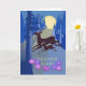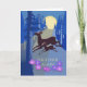 Herzlichen Glückwunsch zum Wiedersehen mit der Geburtmutter, Hirschkarte. Vintage Begrüßungskarte mit der Abbildung eines Nachts durch den Wald laufenden Hirsche und Hirsche. Blau- und Violetttöne dominieren in der Szene. Holz, Mond und Blume sind im Design mit den beiden Hirschen in einem offenen Bereich dargestellt. Kunst, Bild und Vers entworfen von © Shoaff Ballanger Studios.