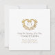 Eine Stornierungskarte für Hochzeiten mit einem dekorativen, alten goldenen Herz-Monogramm auf weiß und einem dunkelbraunen. Ideal, um als Hochzeitsausweis Ihre Gäste über eine Hochzeitsfeier oder eine Stornierung von Veranstaltungen zu informieren oder wegen einer Krankheit oder unvorhergesehener Umstände zu verschieben. Dekoratives Herzkranzdesign, das Ihre eigenen Monogramm-Initialen umschließt. In einem Goldeffekt liest Hochzeit stornierte Liebe ist geduldig. Weitere Farboptionen und passende Elemente sind verfügbar. Original-Design von Sarah Trett für www.mylittleedenweddings.com