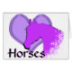 Eine Silhouette des Pferdekopfes auf lila Herzen mit dem Wort "Pferde". Die perfekte Karte für Ihren Pferdefreund!