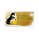 Ein goldenes Sternenhintergrunddesign mit der schwarzen Silhouette eines Weihnachtspferdes mit Goldbogen. Ein schönes Urlaubsadressen-Label für den Pferdefreund in Ihrem Leben.