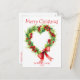Diese individuell gestaltbare Weihnachtspostkarte eignet sich hervorragend, um den Feiertagssjubeln mit einer persönlichen Touch zu vermitteln. Das Design besteht aus einem herzförmigen Kranz aus üppigem grünem Blattwerk und lebhaften roten Beeren, die unten mit einem großen, eleganten roten Bogen geschmückt sind. Oben auf der Postkarte steht "Frohe Weihnachten" in einem spielerischen, roten Schriftart. Unter dem Kranz können Sie den Text personalisieren, um den Namen Ihrer Familie und das Jahr zu nennen. Der Text auf der Vorderseite und auf der Rückseite der Postkarte ist vollständig anpassbar, sodass er eine ideale Wahl ist, um Ihren Freunden und Ihrer Familie einzigartige, personalisierte Grüße zu senden. Die traditionellen Weihnachtselemente in Verbindung mit der Fähigkeit, die Botschaft zu personalisieren, machen diese Postkarte sowohl festlich als auch besonders für die Ferienzeit.