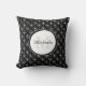 Ein elegantes, quadratisches Kissen mit einem schwarz-weißen Kreismuster mit klassischen Herzen in ihnen. Personalisieren Sie, indem Sie Ihren Namen und mit Monogramm Initiale zum gürtelförmigen Rahmen. Teil der Schwarz Herz Schlafzimmer Dekor Sommerfarbe Sammlung.