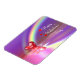 Magnet mit meinem originellen Kunstwerk eines Herzens reflektiert auf glänzendem Wasser mit einem Regenbogen in einem lila Himmel. Im Text steht "Glücklicher Valentinstag".