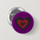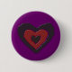 Dieser Knopf zeigt ein schönes digitales Bild eines gotischen Schwarz-Rot-Herzens mit zerrissenen Kanten, die mit einem ätherischen Licht scheinen und schmelzen. Der Hintergrund ist lila.