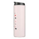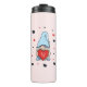 Thermischer Tumbler mit niedlichem Gnome mit Herz auf rosa Hintergrund
