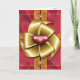 Mit dieser farbenfrohen Karte, die wie ein Geschenk mit rotem Papier und rotem und goldenem Band aussieht, können Sie Ihre Liebste ersticken. Ein großer goldflaumiger Bogen in der Mitte ist rot und ein halbdurchsichtiges goldenes Herz oben. 2 mehr halbtransparente goldene Herzen erscheinen über und unter dem großen Bogen. Die Innenseite der Frontabdeckung hat 3 stilisierte rote Herzen und die Innenseite der Rückseite hat eine besondere Nachricht, die Sie anpassen können. Kunst und Design von Karlajkitty.