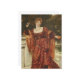 Dieses Design zeigt ein Gemälde des englischen Viktorianischen Künstlers Frank Dicksee (1853-1928). Es zeigt Hesperia, einen der Nymphen der griechischen Mythologie, die Göttinnen des Abends und das goldene Licht der Sonnenuntergänge waren. Im Mythos bewacht Hesperia goldene Äpfel, die aus einem speziellen Baum wachsen. Hesperia wird hier als schöne Frau dargestellt, die ein langes, zeitgenössisches rotes Kleid trägt. Sie ist in einem eleganten Wächter stehend. Das Originalwerk wurde 1887 von Frank Dicksee gemalt.