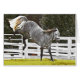 Ein Daple Gray Pferd fotografierte am sonnigen Herbstmorgen den Mittelkick. Äpfel sind eine Farbvariante, die bei Graupferden am häufigsten vorkommt.