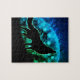 verschiedene farbige Lichter hinter dem heulenden Wolf