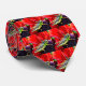Diese glänzend farbige Krawatte kennzeichnet ein wiederholendes Muster der glänzenden grünen, gelben und schwarzen Heuschrecken, die auf der lila Mitte einer Blume mit den herrlichen roten Blumenblättern gehockt werden.