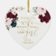 Ein schönes und unvergessliches Geschenk für die Eltern der Braut. Elegantes Design mit einem Single-Foto-Layout, um Ihr eigenes Foto auf der Rückseite des Ornaments zu zeigen. Das Foto ist in einer Herzform gerahmt mit unseren eleganten rosa rosa Aquarell-Blume. "Heutzutage eine Ehefrau, Always Your Little Girl" ist in eleganten Imitaten goldene Serifen und Schriftzeichen entworfen" mit unseren handbemalten, tiefburgundischen Rose und rot-rosa Blume. Personalisieren Sie Ihren Hochzeitstag und Ihren Namen. Wirklich unvergessliche und besondere Geschenke für Ihre Eltern, Mutter oder Vater. Kunst von Moodthology Papery.