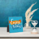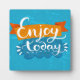 Genießen Sie heute - positives Zitat, handgeschriebene Kalligraphie auf blauem Grunge-Hintergrund und orangefarbenes Band. Vector Typografie Design für Karten, T - Shirt, Plakate und Social Media Inhalte. | Bigstock® - Alle Rechte vorbehalten.