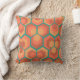 Dieses Kissen hat ein geometrisches Design von Sechsecken in Sets von drei, die wie Blume in Gold, Orange und Rot auf einem Feld von aquamarinen aussehen.
