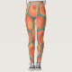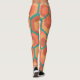 Diese Leggings haben ein geometrisches Design von Hexagonen in Sets von drei, die wie Blume in Gold, Orange und Rot auf einem aquamarinen Feld aussehen.