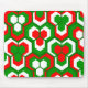 Dieses Mauspad hat ein geometrisches Weihnachtsdesign aus Sechsecken in Sets von drei, die wie Blume in Rot, Weiß und Grün aussehen.
