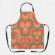 Diese Schürze hat ein geometrisches Design von Hexagonen in Sets von drei, die wie Blume in Gold, Orange und Rot auf einem Feld von aquamarinen aussehen.