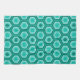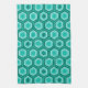 Traditionelles japanisches Kimono-Print-Teetuch - Sechsecke mit einem Motiv aus der Blume in türkisfarbenem, aquamarinem, weißem und hellen Wasser auf türkisfarbenem Hintergrund