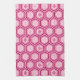 Traditionelles japanisches Kimono-Print-Teetücher - Sechsecke mit einem Motiv aus Blume in tiefburgundigem Wein, Fuchsienrot und weiß auf pastellrosa Hintergrund