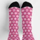 Socken in einem japanischen Kimono-Druck - Sechsecke mit einem Motiv aus tiefburgundischer Blume, Fuchsienrot und weiß auf pastellrosa Hintergrund