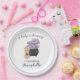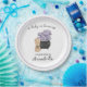 Diese individuellen Baby Dusche Teller sind mit einem niedlichen Halloween-Thema ausgestattet. In der Mitte befindet sich ein Bild eines Hexenkessel, in dem sich ein Stapel Babyblöcke befindet. Eine kleine Spinne ist ein Gebäude über die Blöcke hinweg. Die Phrase "Ein Baby braut" wird in einem eleganten Skript-Schriftart auf der Oberseite der Platte gedruckt. Im unteren Teil wird ein Beispielname gedruckt, den Sie personalisieren können, um Ihren eigenen individuelle Name oder einen anderen Text einzubinden. Es ist perfekt für Herbst- oder Halloween-Babydusche.