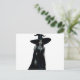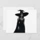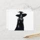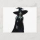 Dieses faszinierende digitale Kunstwerk zeigt eine mächtige Hexe in einem schwarzen, schlichten Kleid mit leuchtenden roten Augen und einem eleganten Hexenhut.
