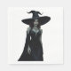 Dieses faszinierende digitale Kunstwerk zeigt eine mächtige Hexe in einem schwarzen, schlichten Kleid mit leuchtenden roten Augen und einem eleganten Hexenhut.