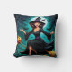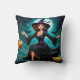 Hexe, die über einen mondbeleuchteten Friedhof mit Kissen