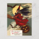 Hexe fliegt zu Halloween in ihrem Besen Postkarte