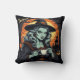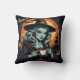 Hexe genießt Tee auf einem lustigen Halloween-Aben Kissen
