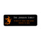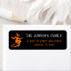 Benutzerdefinierte, personalisierte, chic, lustig, spuke, fliegende Hexe auf der halloween orange schwarz-weiß, Familienname Party Einladungen Mail Rücksendeadresse-Etikett. Geben Sie einfach Ihren Namen / Familiennamen / Firmennamen und Adresse ein, um Ihre persönlichen Daten zu vermitteln. Ideal für Zuhause und Geschäftsleute, Erwachsene und Kinder, persönliche und offizielle Mailings. Große Rücksendeadressen-Aufkleber für den Einsatz auf Mailings für beängstigende sprichwörtliche Zombie Spuk halloween Geburtstagsfeier, Party, Hochzeit, Babydusche, und vieles mehr.