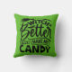 Dieses Halloween-Design enthält den spielerischen Satz "Hexe hat besser Süßes", der in einem dynamischen, gemischten Schriftart-Layout angeordnet ist. Das Wort "Hexe" wird in fett gedruckten, blockigen Buchstaben angezeigt, während "Besser" in einem kursiven, fließenden Skript geschrieben wird, das dem Design ein Gefühl der Dringlichkeit und Spaß verleiht. Die Phrase "Have My" ist in einem Banner eingeschlossen und betont die Nachfrage weiter. Das Wort "Candy" fällt ganz unten in großen Blockbuchstaben auf, mit kleinen Schädelabbildungen, die in das Design integriert sind. Weitere Halloween-Elemente wie ein Hexenbromstock, eine Fledermaus, ein Stern und eingepackte Süßigkeiten sind in der Komposition verstreut, was das gespenstische und festliche Gefühl verstärkt.